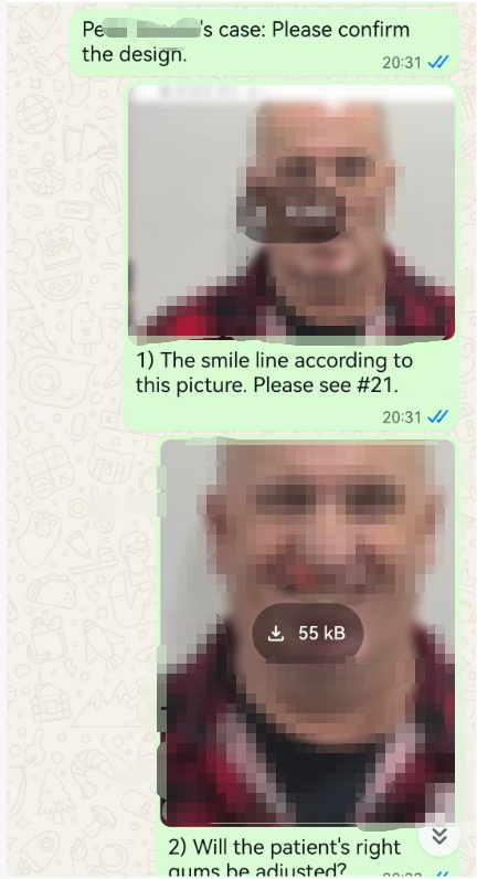 The doctor provides pre-operative scans and intraoral photos of the patient.