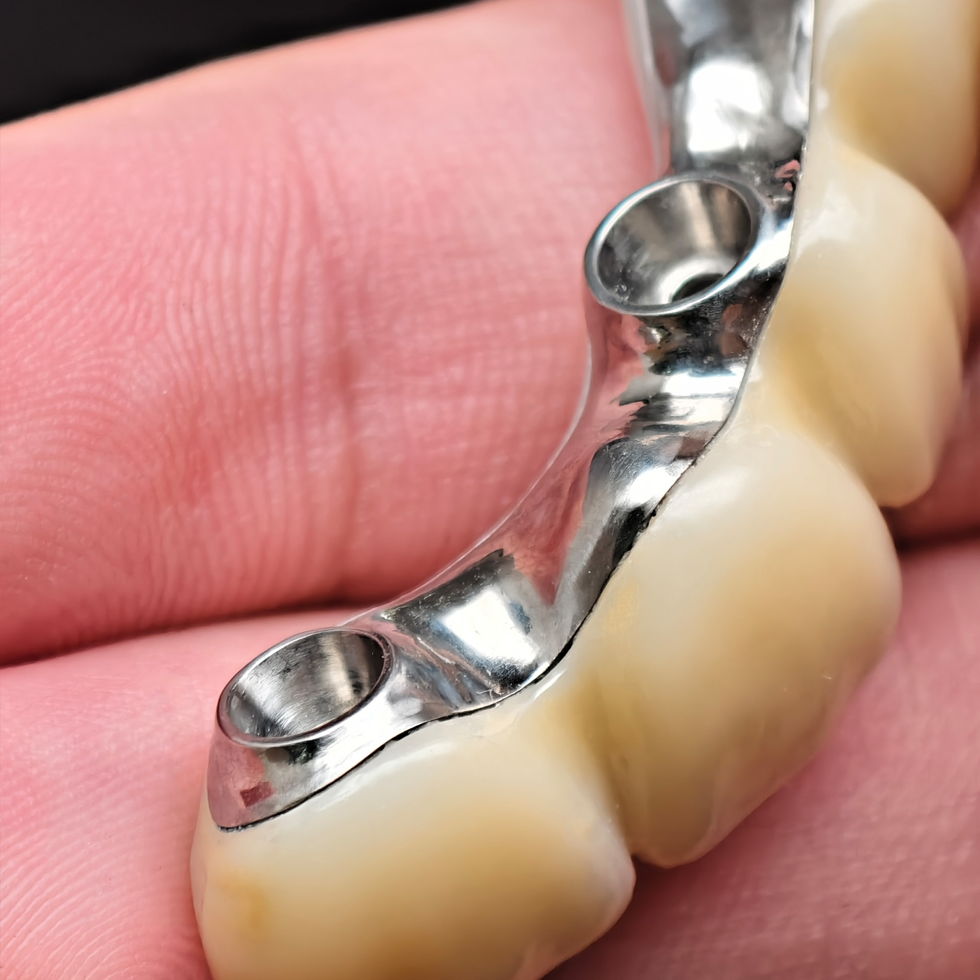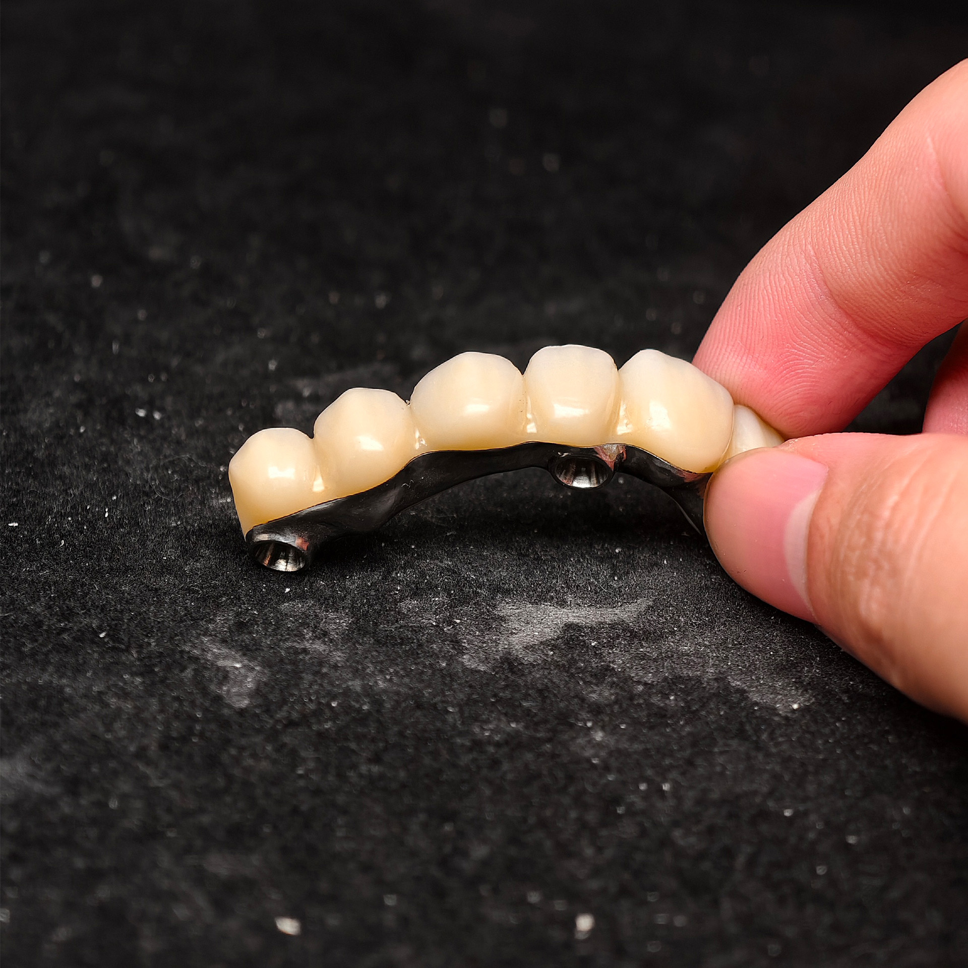 Ti-bar (Pure Titanium Metal frame)Our Zirconia bridge with titanium substructure delivers an engineered solution for space-limited Full arch cases, combining titanium's proven