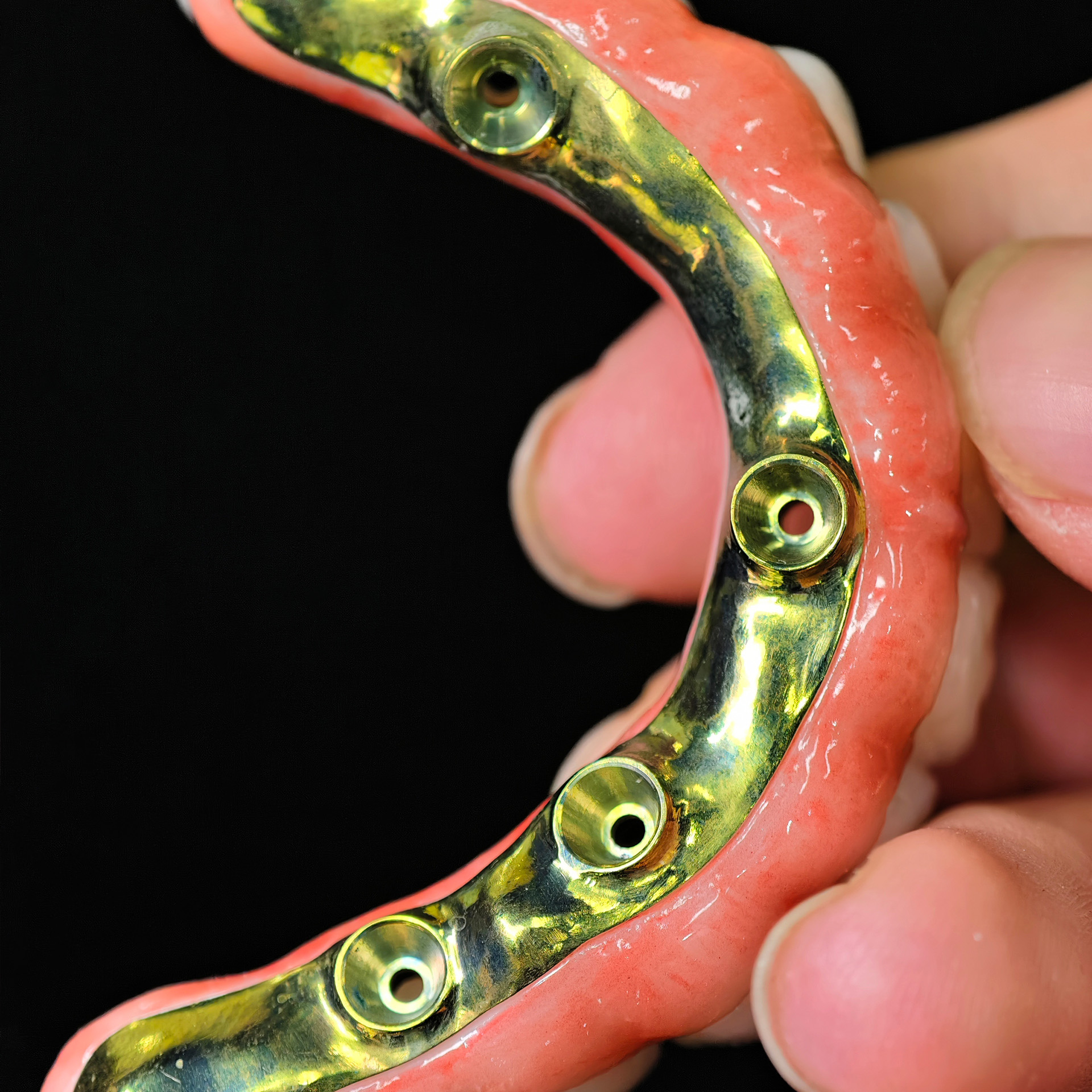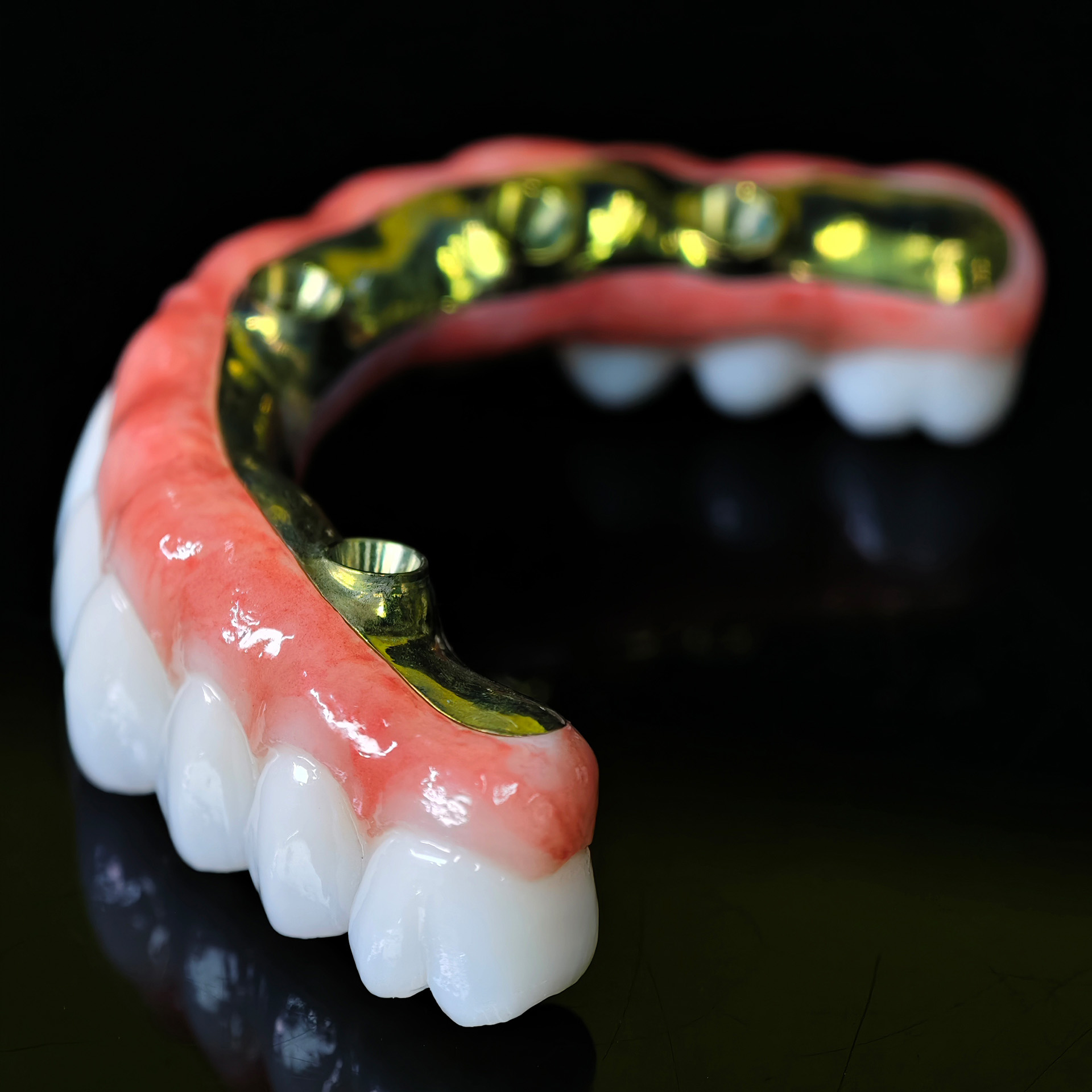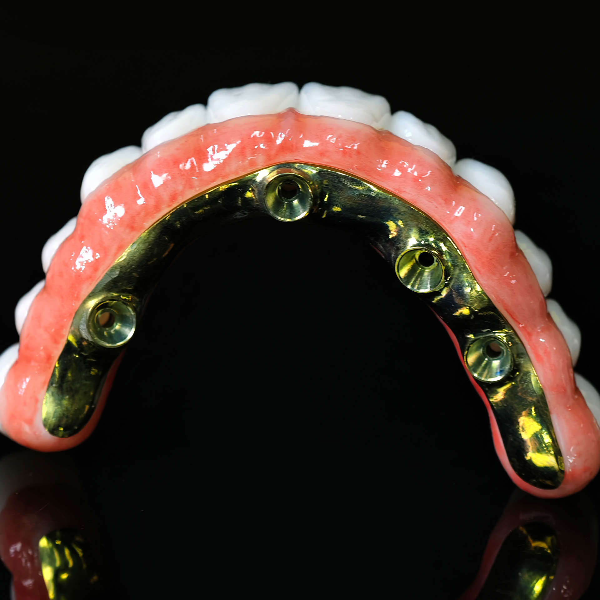 Our Zirconia bridge with titanium substructure delivers an engineered solution for space-limited Full arch cases, combining titanium's proven strength with zirconia's superior esthetics through direct-to-implant engagement that eliminates traditional multi-component complexity.