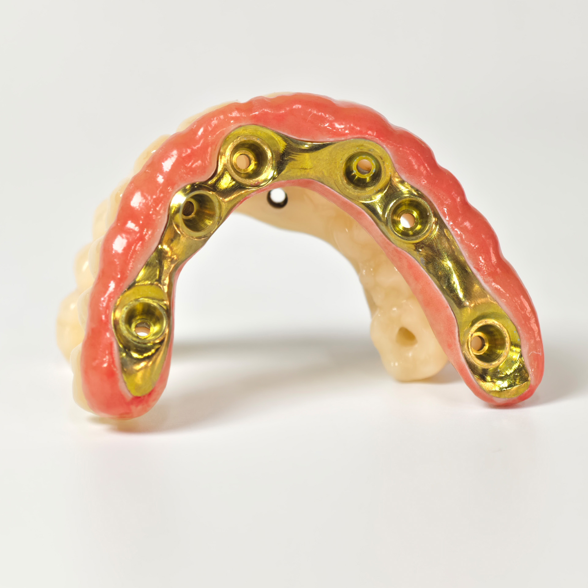 Our Zirconia bridge with titanium substructure delivers an engineered solution for space-limited Full arch cases, combining titanium's proven strength with zirconia's superior esthetics through direct-to-implant engagement that eliminates traditional multi-component complexity.