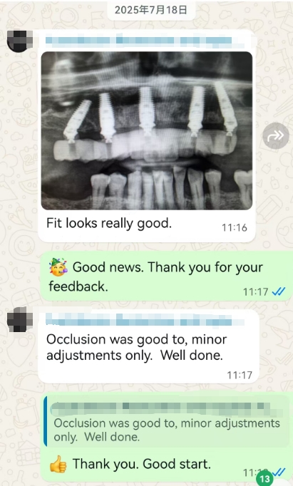 Summary: We are Bluesky digital dental lab, a provider of dental implant technology services. We collaborated with the doctor to complete this case, reducing the number of patient visits. (First visit: pre-operative scan; second visit: surgery day; third visit: preparation for permanent bridge scan; fourth visit: permanent bridge placement).