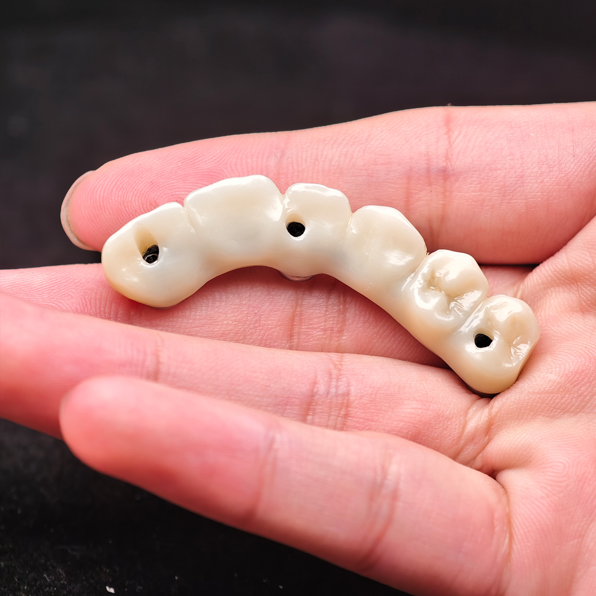 • Our Zirconia bridge with titanium substructure delivers an engineered solution for space-limited Full arch cases, combining titanium's proven strength with zirconia's superior esthetics through direct-to-implant engagement that eliminates traditional multi-component complexity.